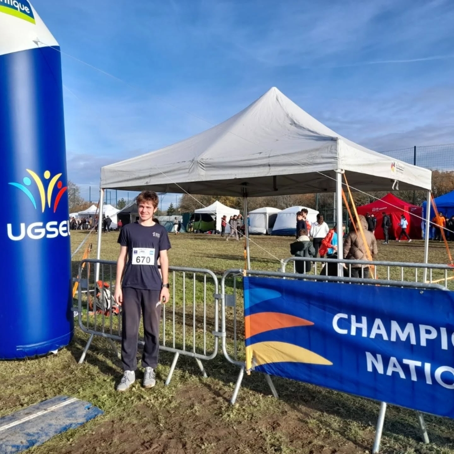 Engagé dans la catégorie Minime Garçon 2ᵉ année, il a livré une superbe course au milieu d’un peloton de 188 coureurs venus de tous les établissements privés de France, ill termine à une très belle 47ᵉ place !