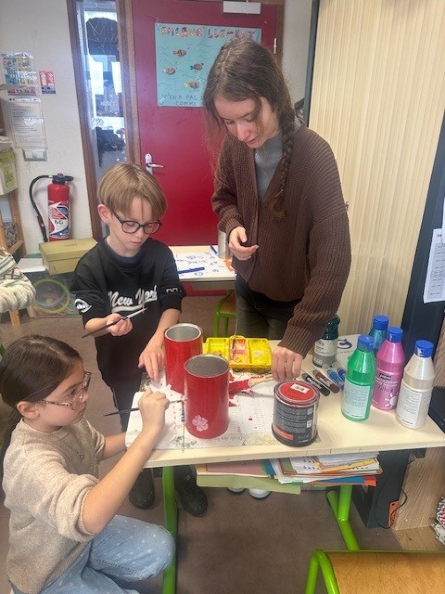 Elsa, notre service civique nous offre de son temps pour réaliser nos nichoirs. Belle action qui fait partie de notre projet ENS de l’année "À tire d’ailes" et qui va ravir les petits oiseaux !