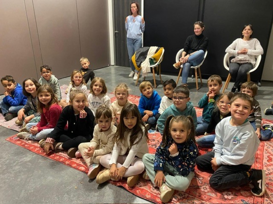 Des élèves ravis de redécouvrir ce lieu tant apprécié: moment d'écoute suivi d'un temps pour déambuler dans les rayonnages et choisir son livre.