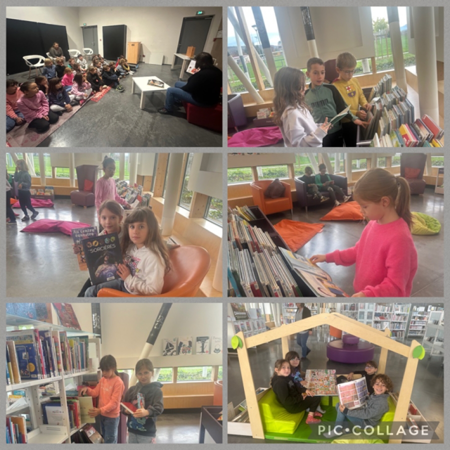 Les ce1/ce2 ont tout d’abord frissonné… puis beaucoup ri en écoutant des histoires de sorcières, premier thème de l’année abordé à la médiathèque !