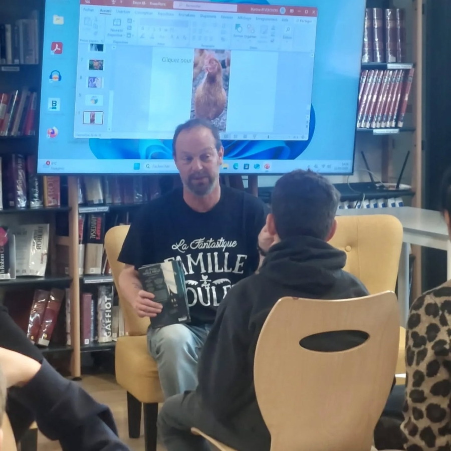Le 22 janvier, les sixièmes ont eu la chance de rencontrer M. Yann Rambaud, auteur du livre La famille Poulet.