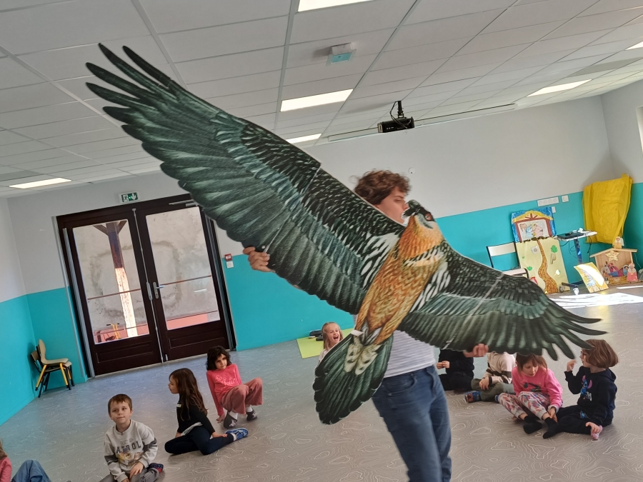 Jeudi 26 mars, Mathis est venu nous parler des oiseaux. Pour commencer, il nous a raconté l’histoire de "Solange la mésange". Il avait pour cela des doudous et des marionnettes. C’était chouette.